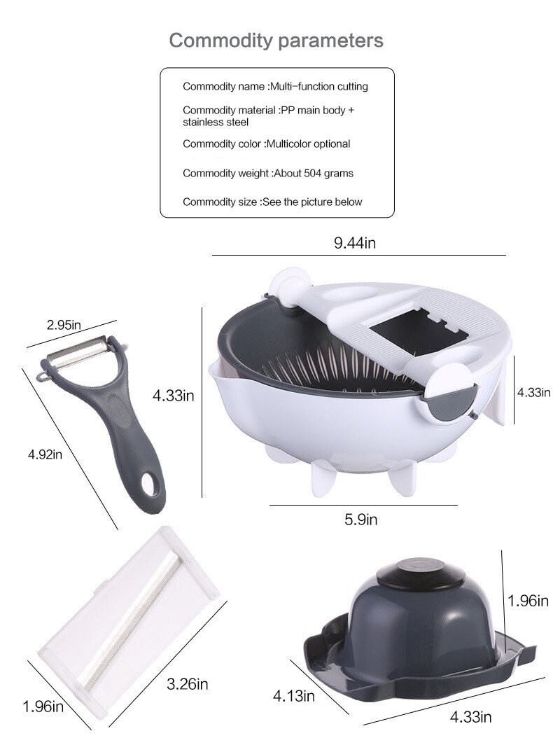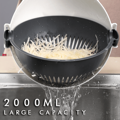 All-in-one Design: Use a variety of different blades to combine the function of the drainer with the functions of shredding, slicing, and grinding fruits and vegetables. Ultra Sharp & Safe: Made of highest quality stainless steel and razor-sharp blades with anti-cut design. You can cut and peel smoothly without injury. Large Capacity: Able to deal with a batch of vegetables with capacity up to 2000ml. Cut Thick Wire: For peeling any fruit/vegetable like carrots into thin/ thick strips. Shredded: For slicing cucumbers, potatoes, etc. Ground Garlic: For grating ginger, garlic, etc. without chopping which is easy and labor-saving. slice:Easily slice, save time and effort. Crinkle Cutter: For making delicious potato chips at home with ease. Sharp peeling knife: easy peeling. Built-in Drainage: Convenient to cut vegetables and clean them directly through a drainage device by rotating the cutter. It also doubles as a container to store fresh vegetables after draining all water off. Detachable Drainer: The drainer can also be freely removed for easy use.