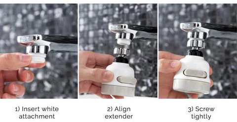 360 degrees rotation, it allows you to point the stream of water where you need it! With 3 spray modes to select from, you get full control of both the direction and strength! Select from Jet, Jet + Shower, and Shower modes Freely rotatable to up to 360 degrees for easy multi-angle cleaning! Comes with threaded mouth design that prevents The Sink Spray Tap from falling off! PROVIDES A SOFT JET OF A WATER STREAM, YOU DON'T HAVE TO WORRY ABOUT WATER SPLASHING! Material: ABS; Package Weight:0.1Kg; Size : 8.5 x 5.3;